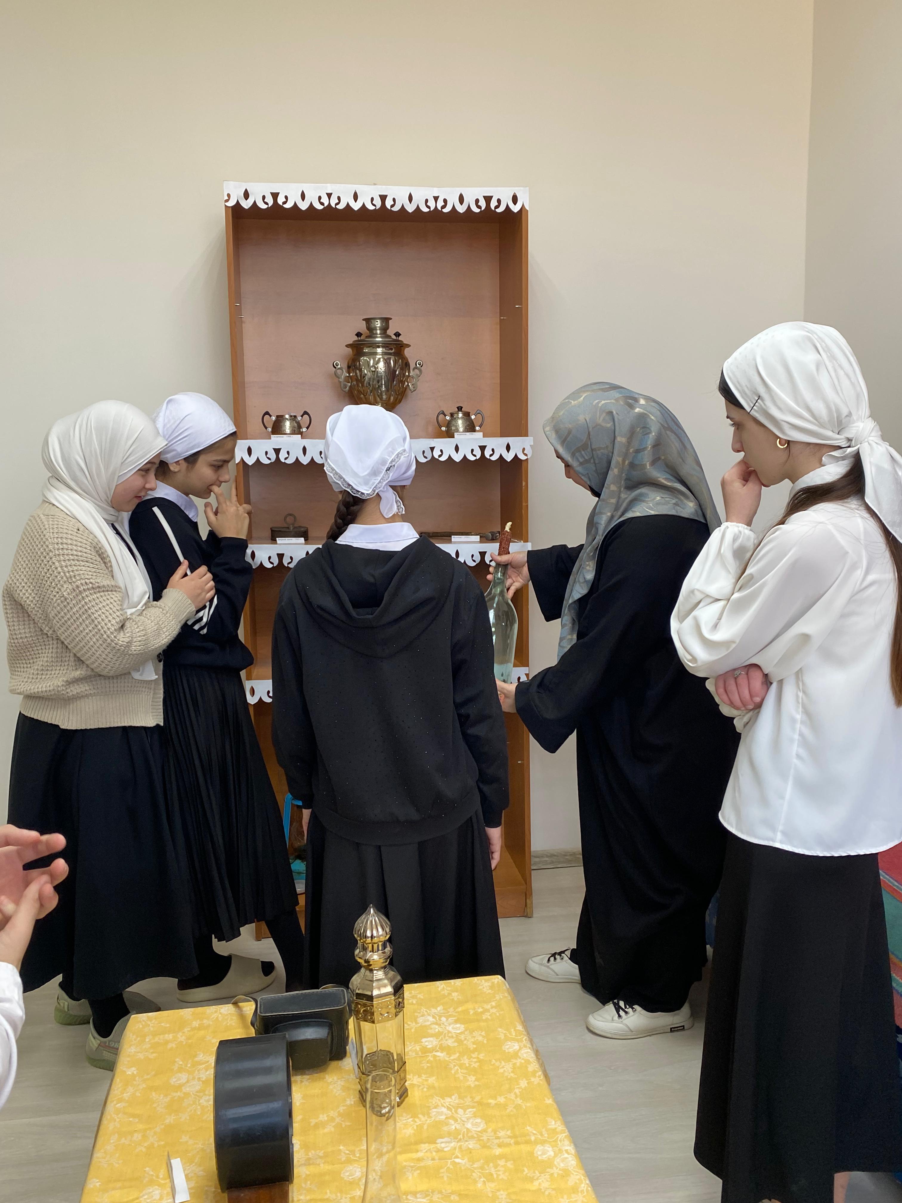 Под руководством Тамаевой З.О., обучающиеся знакомились с новыми экспонатами школьного музея.