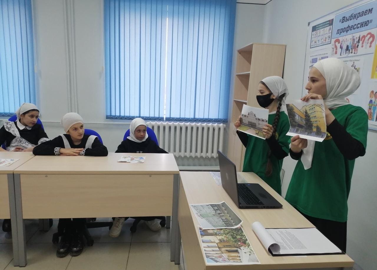 Задачи: формирование актуального для подростков «информационного поля»; развитие навыков и умений по целеполаганию и планированию своего будущего; познакомить учащихся с наиболее популярными ВУЗами и СУЗами Чеченской Республики; провести практическое задание для закрепления представлений о наиболее важных профессиях.