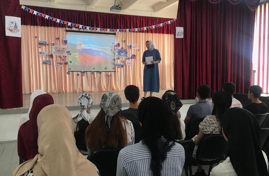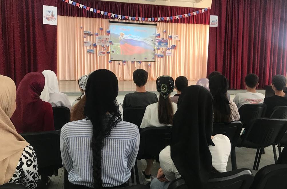 12.06.2022День России –это символ национального единения и общей ответственности за настоящее и будущее Родины. В актовом зале нашей школы состоялось торжественное мероприятие, посвященное Дню России. В мероприятии приняли участие обучающиеся 9-х классов. Преподаватели нашей школы организовали информационную часть мероприятия, донесли до обучающихся суть и историю данного праздника.