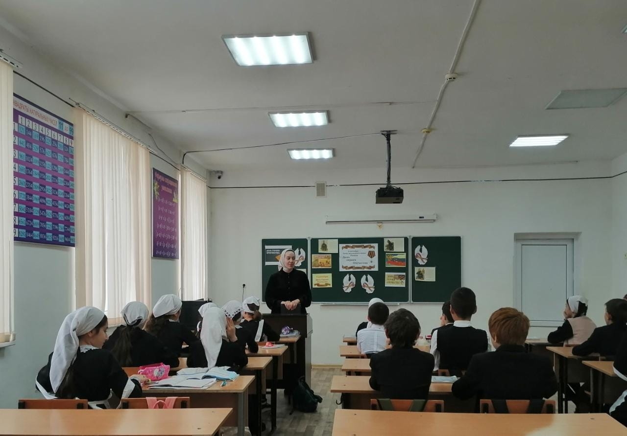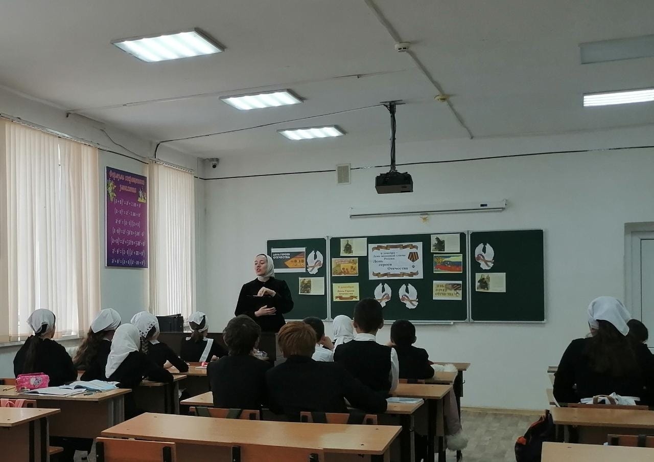 В рамках реализации плана мероприятий в образовательных организациях Урус-Мартановского муниципального района, были проведены классные часы «Память о героях не уйдёт в забвение», приуроченные ко Дню героя Отечества.