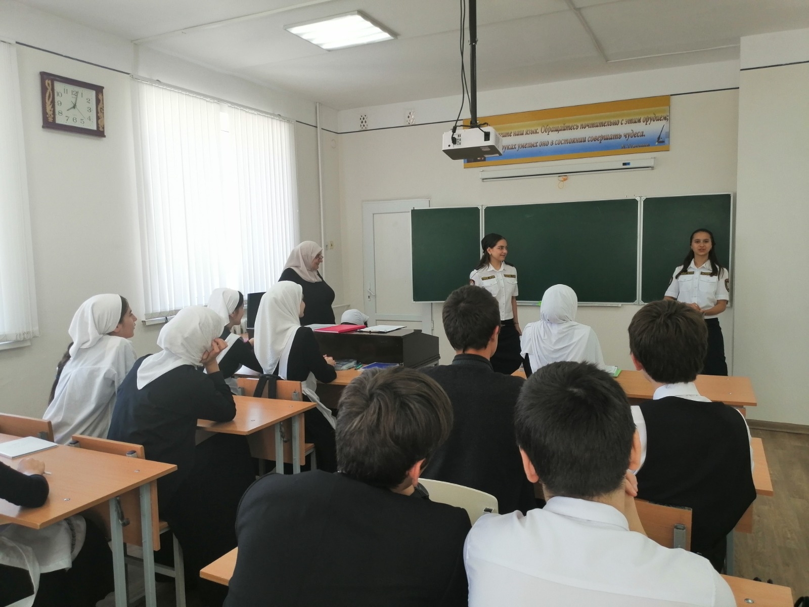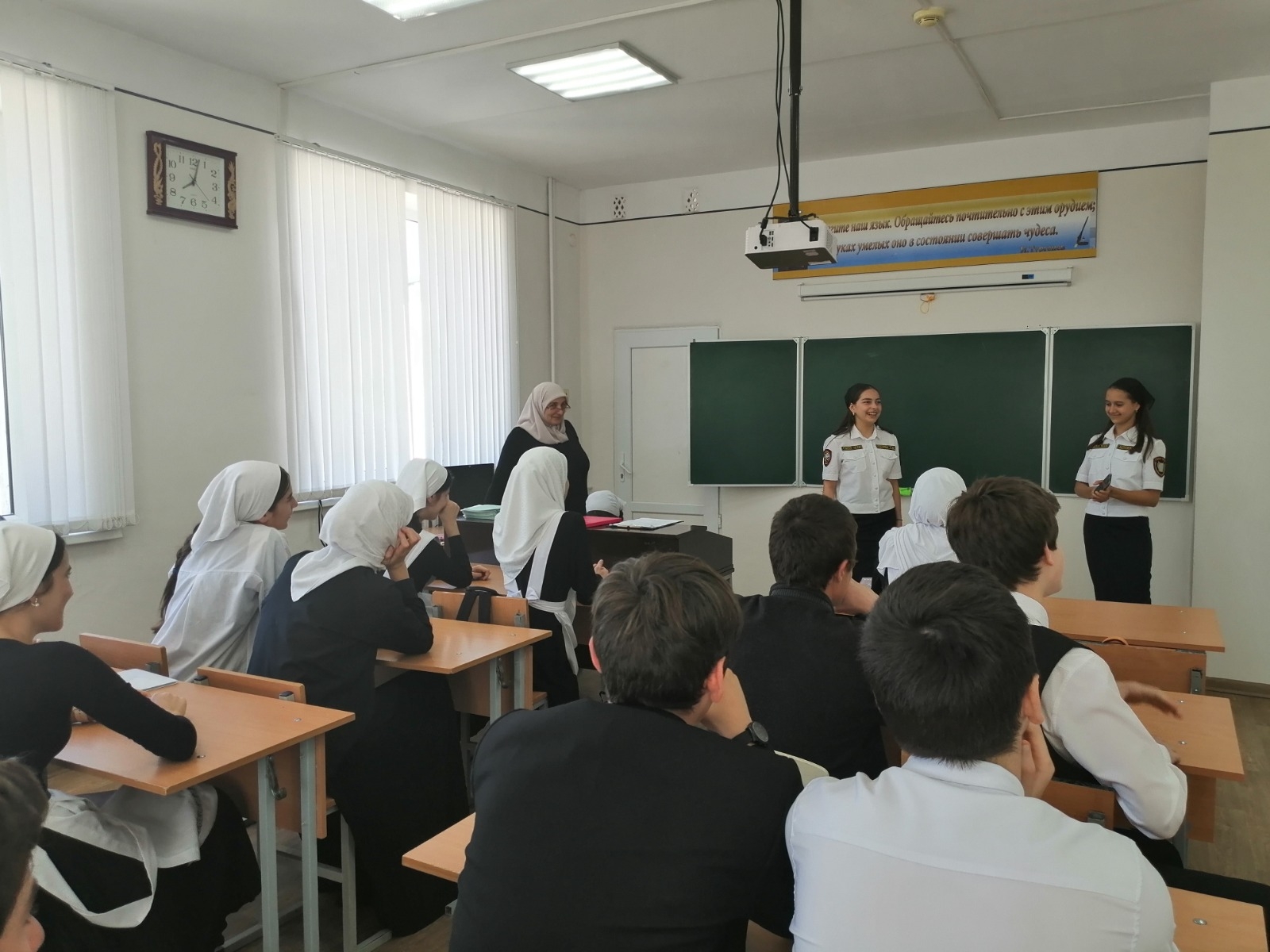 В рамках выполнения модуля "Профориентация" рабочей программы воспитания МБОУ "СОШ №1 с. Рошни-Чу", была организована встреча с представителями филиала ЧПОУ «Ставропольский кооперативный техникум».