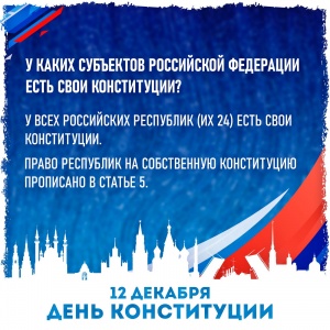 «День Конституции» — государственный праздник, празднование принятия Конституции в современной России — Российской Федерации, отмечается 12 декабря