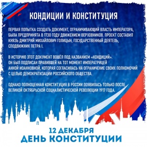«День Конституции» — государственный праздник, празднование принятия Конституции в современной России — Российской Федерации, отмечается 12 декабря