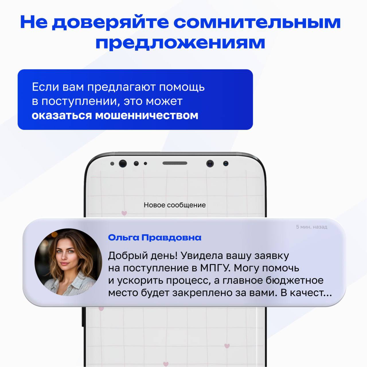 10.07.2025Помните, что в современном мире множество информационных источников с недостоверными данными. Поэтому важно быть внимательными и критически относиться к любой информации, связанной с образовательными программами, поступлением и условиями обучения.