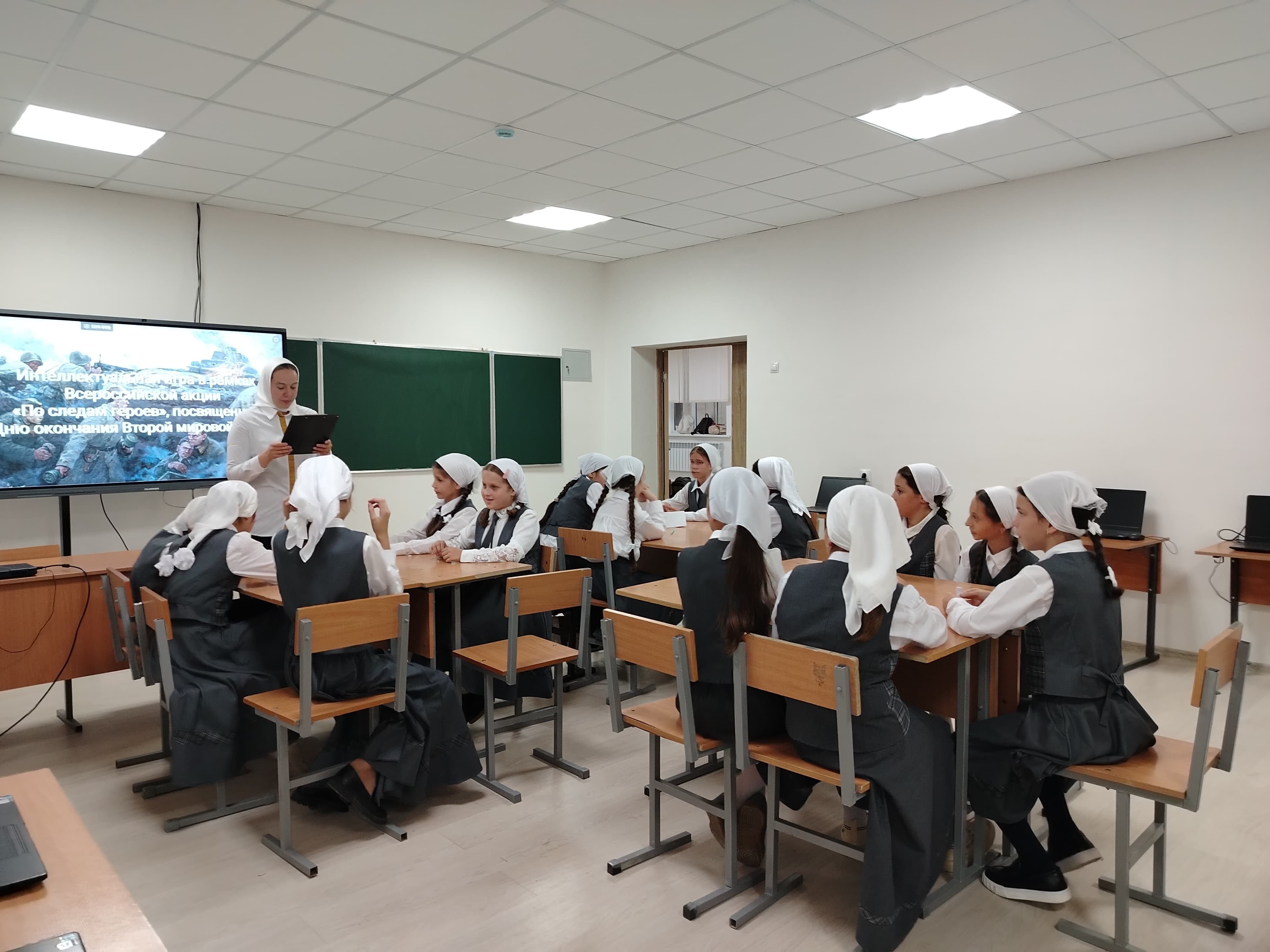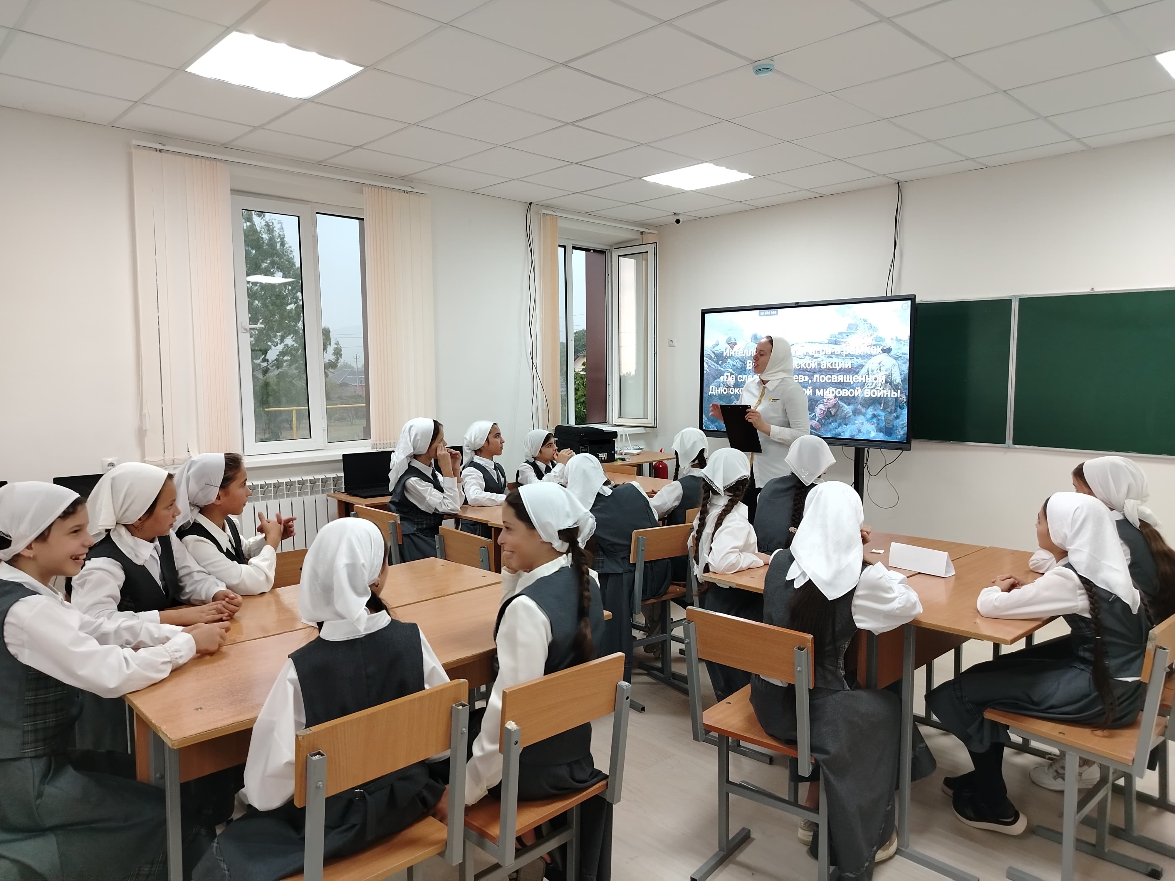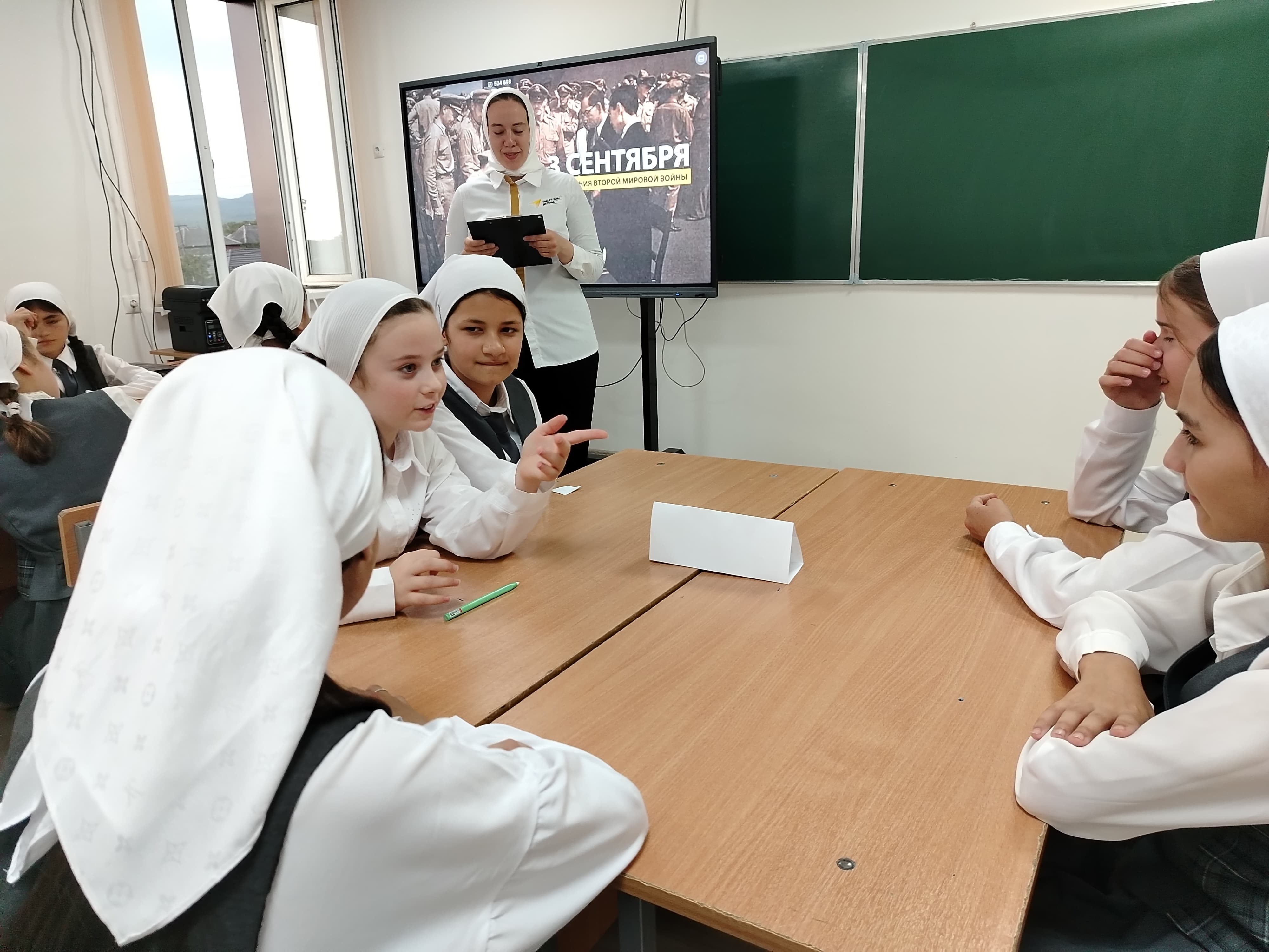 Под руководством советника директора по воспитанию и взаимодействию с детскими общественными объединениями Шахбиевой З. О-Х, в рамках Всероссийской акции «По следам героев», посвященной Дню окончания Второй мировой войны, активисты РДДМ «Движение Первых» организовали и провели интеллектуальную для обучающихся 5-х классов.