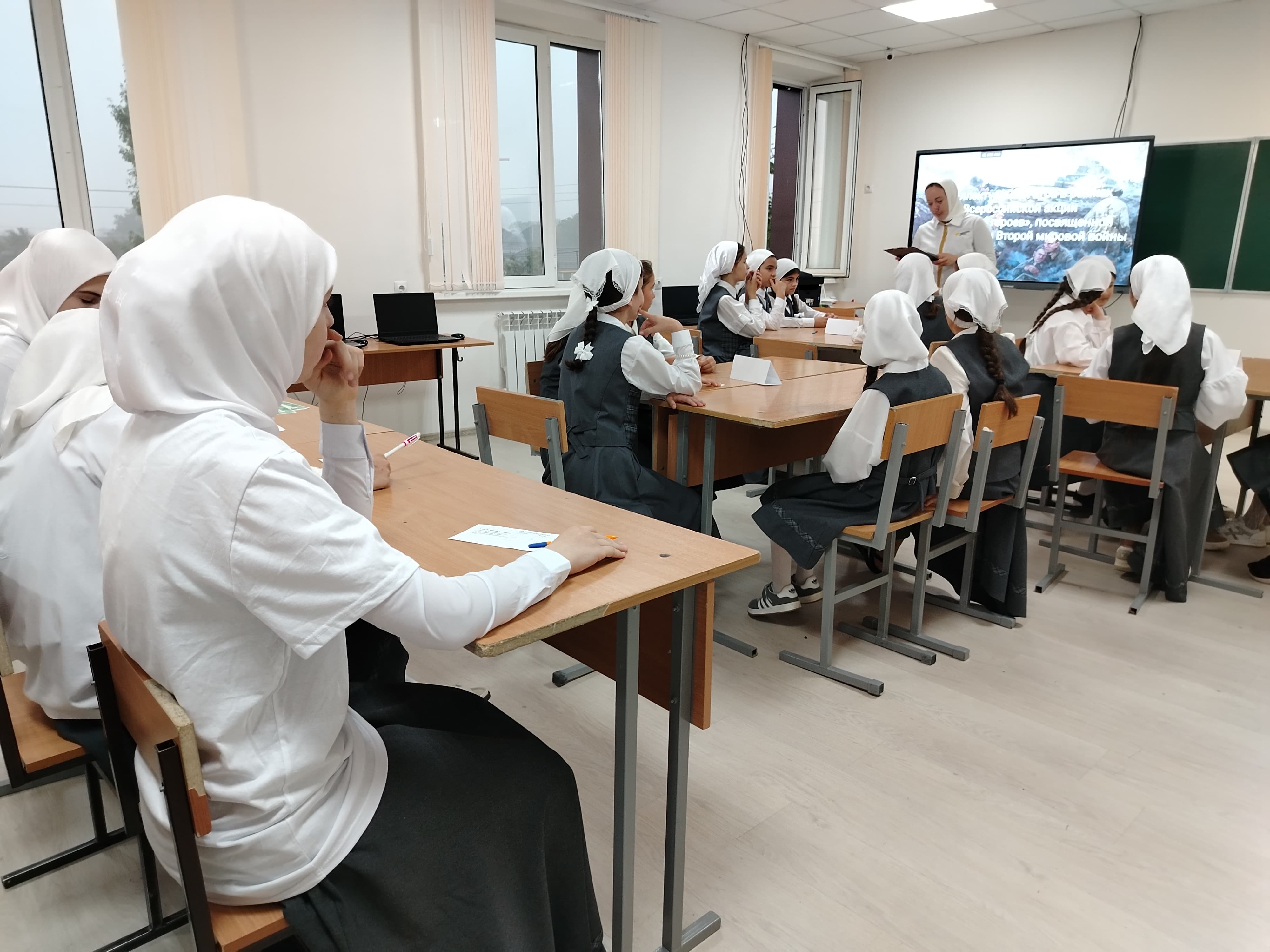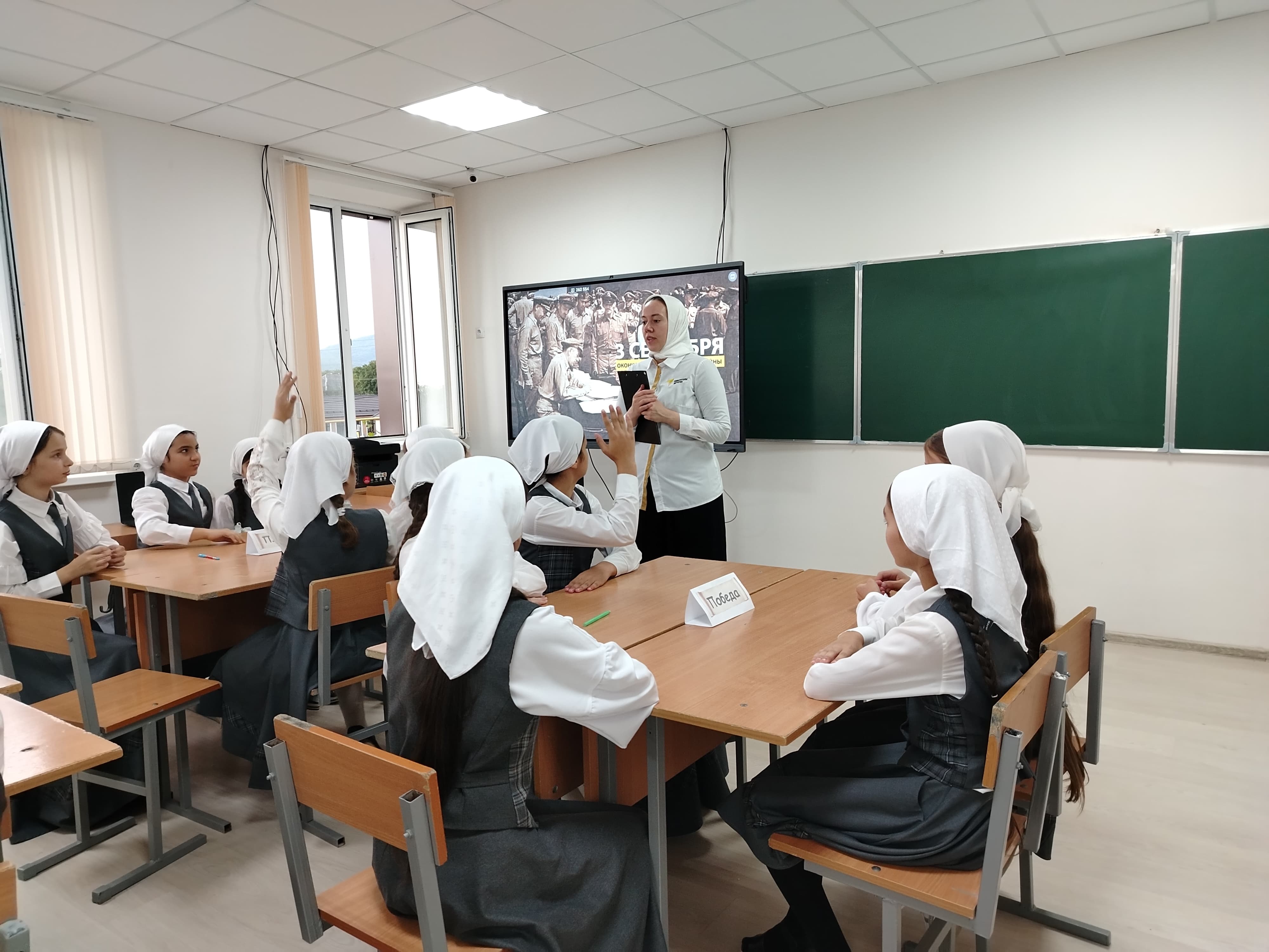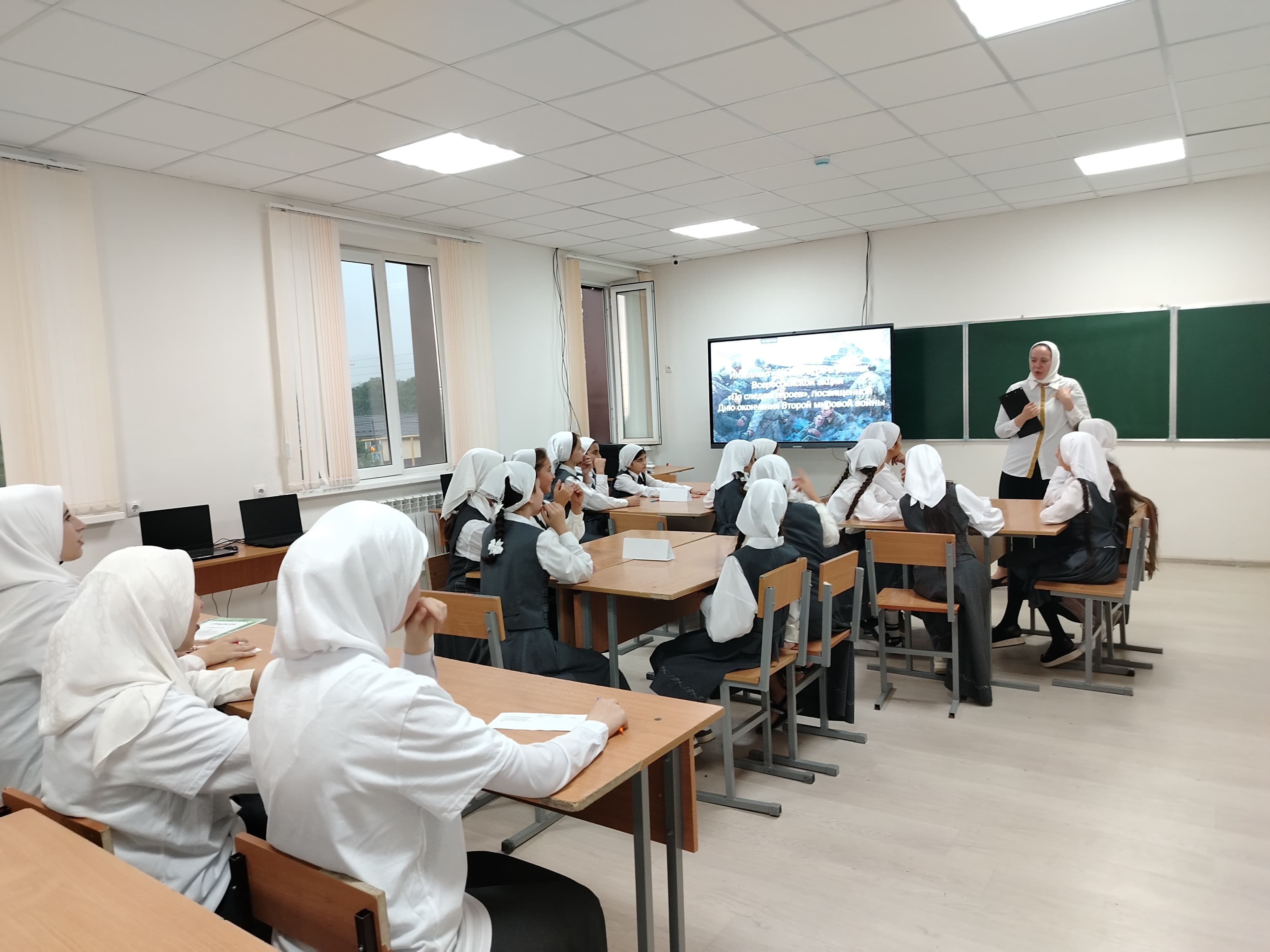 Под руководством советника директора по воспитанию и взаимодействию с детскими общественными объединениями Шахбиевой З. О-Х, в рамках Всероссийской акции «По следам героев», посвященной Дню окончания Второй мировой войны, активисты РДДМ «Движение Первых» организовали и провели интеллектуальную для обучающихся 5-х классов.