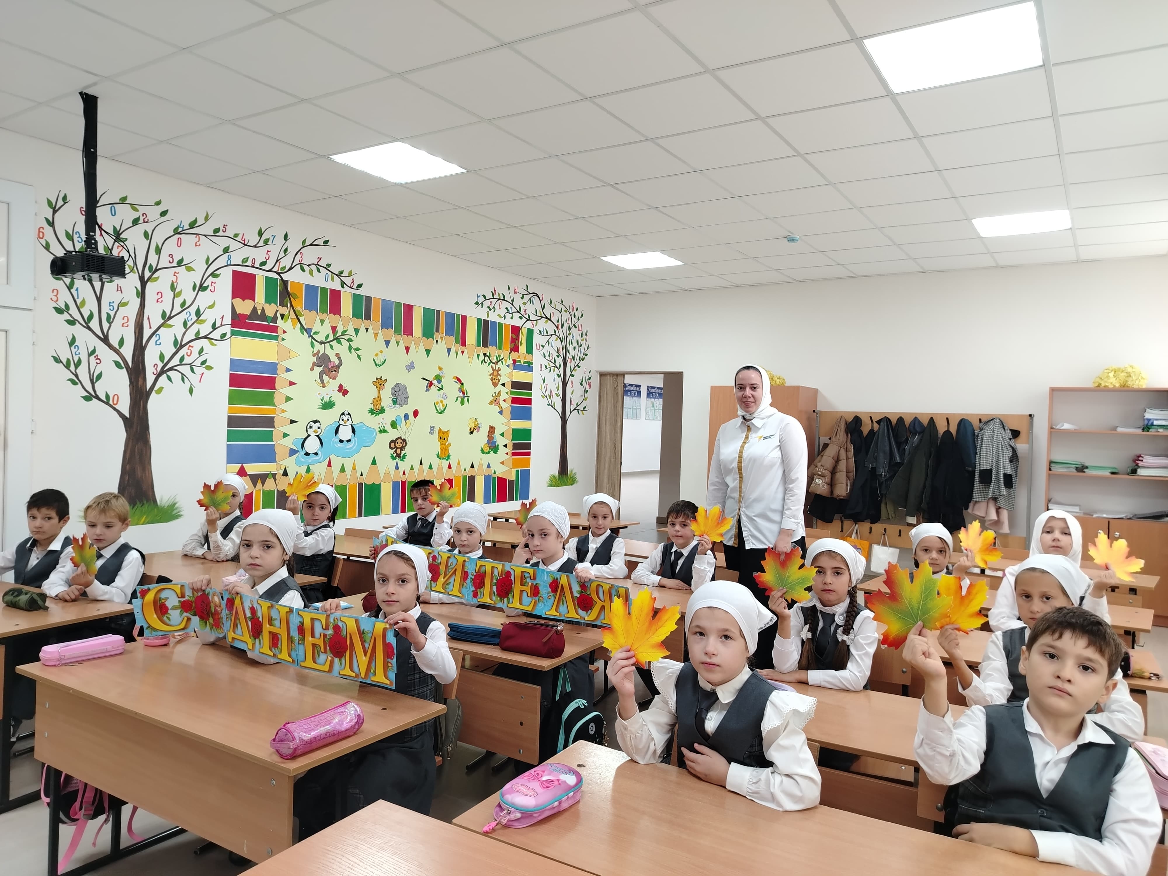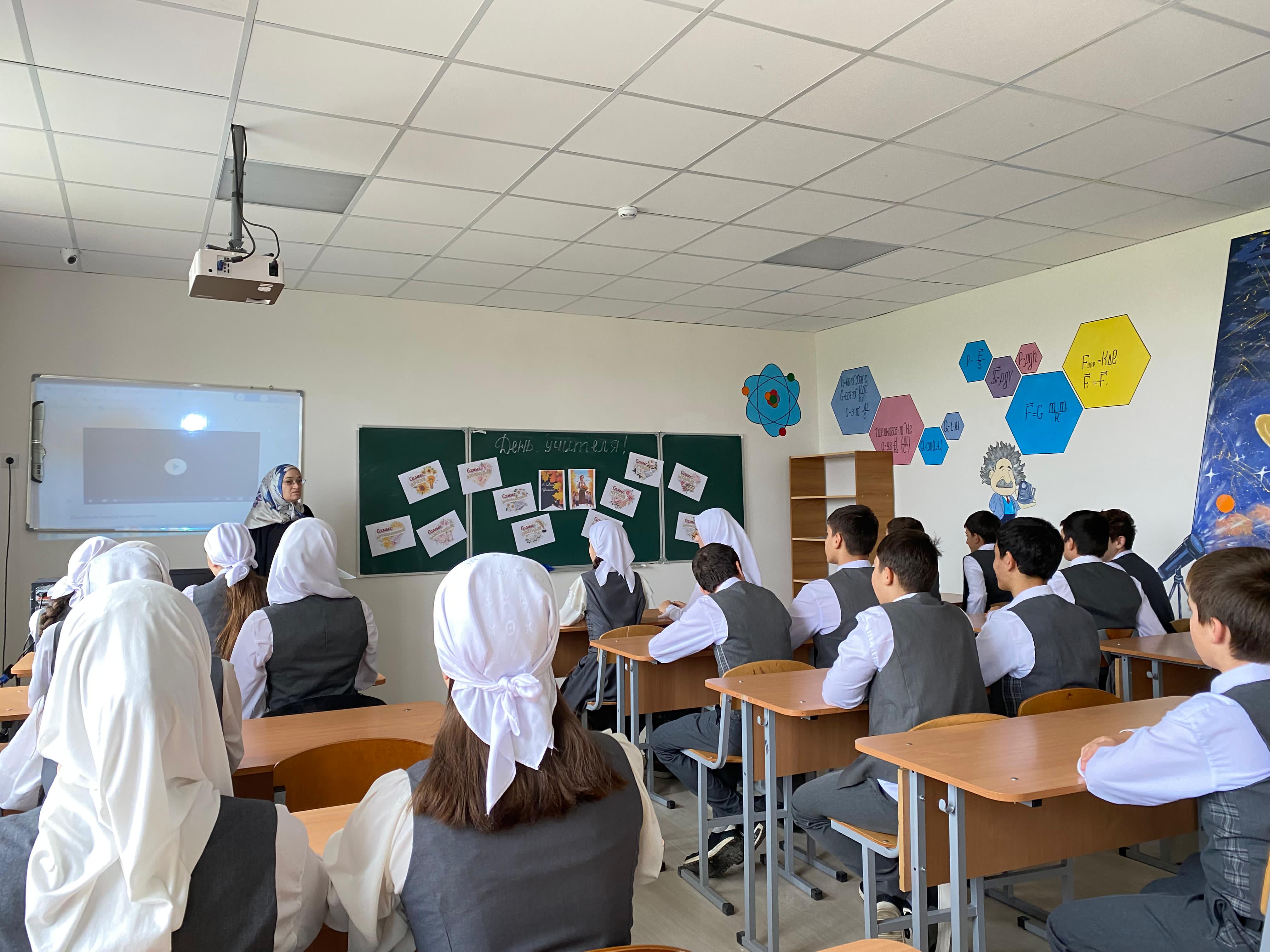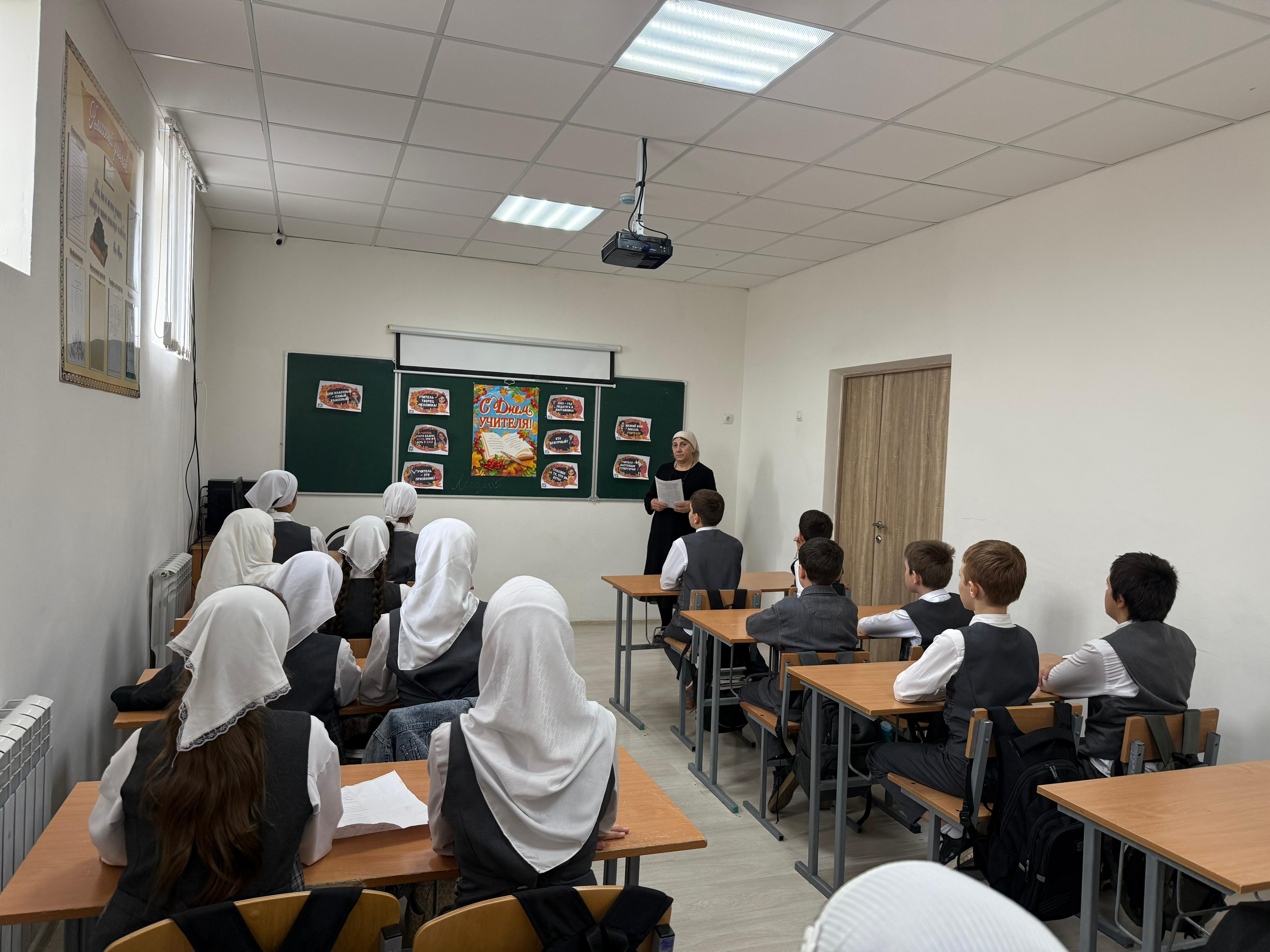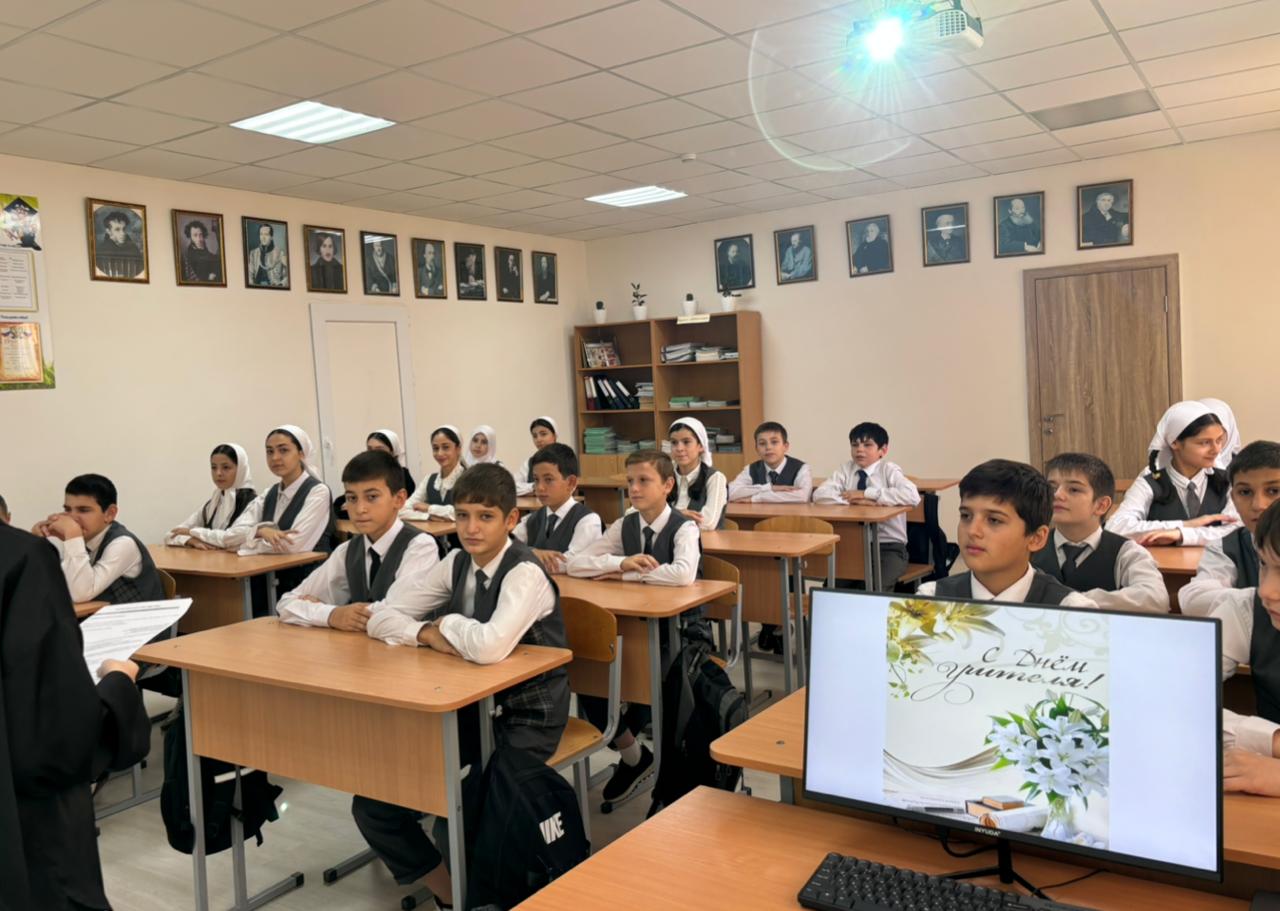 Под руководством советника директора по воспитанию и взаимодействию с детскими общественными объединениями Шахбиевой З. О-Х., совместно с классными руководителями 1-9 классов, были проведены классные часы «Самая важная профессия - Учитель!»