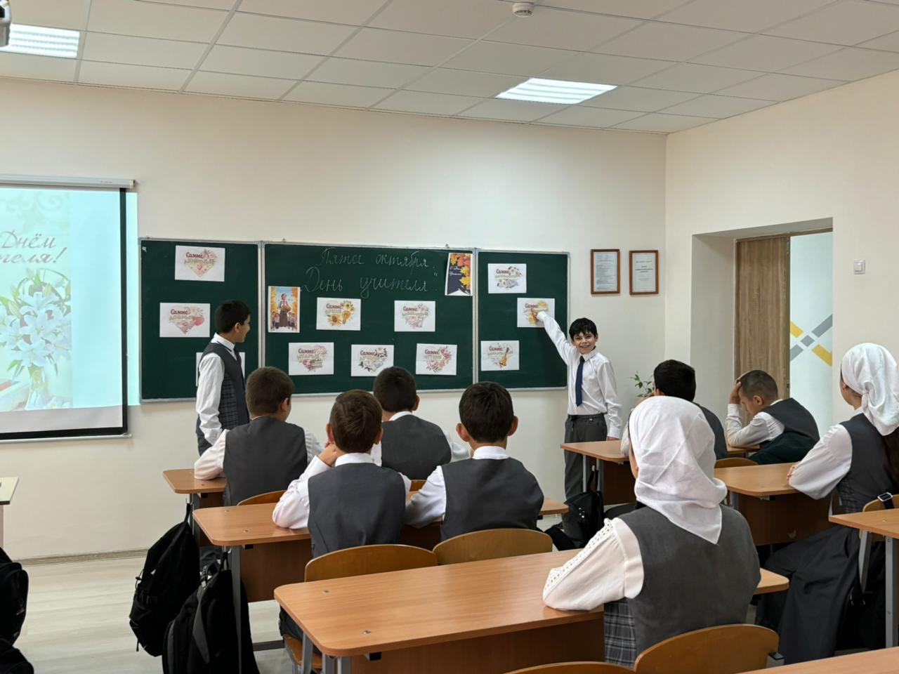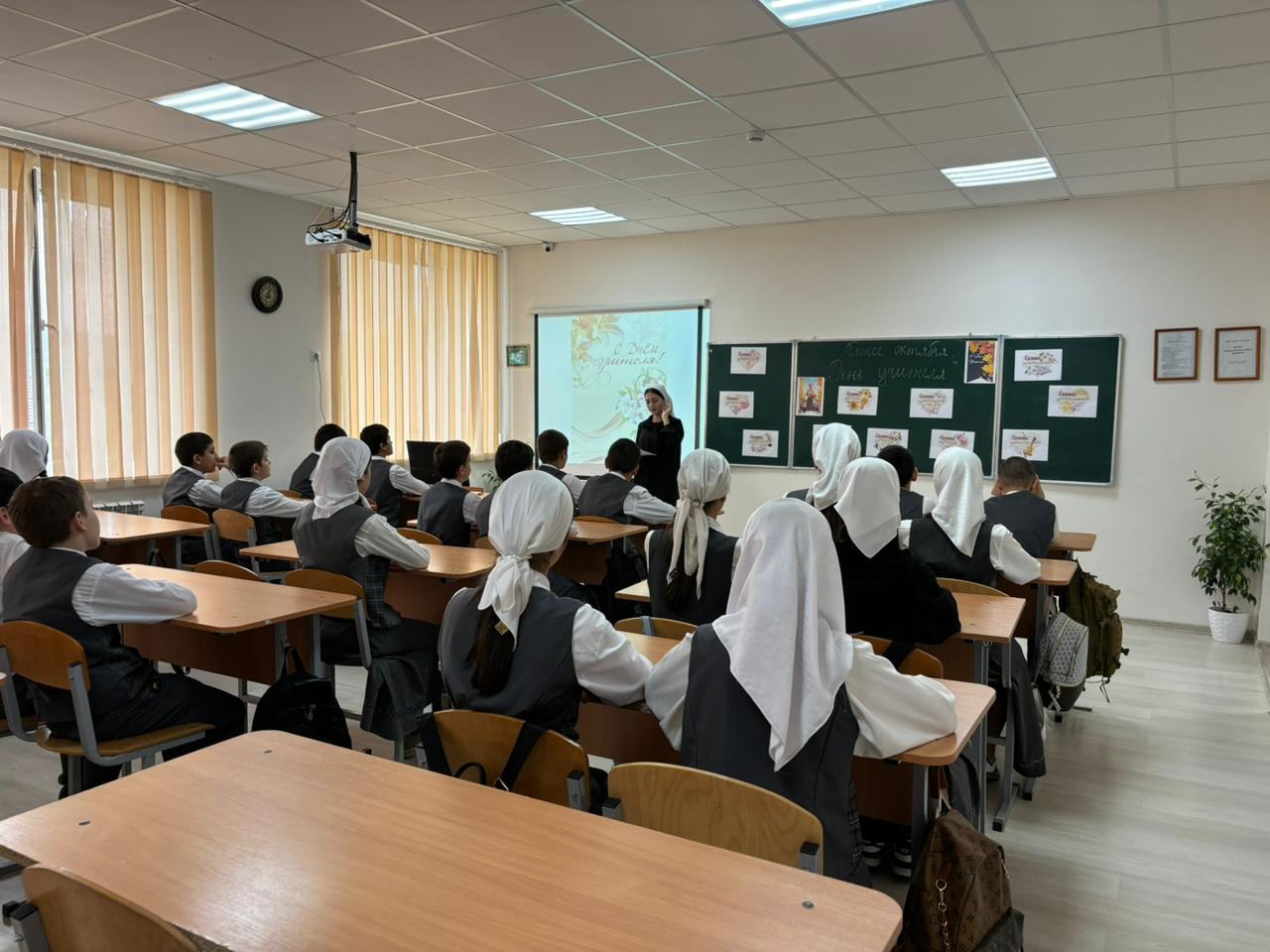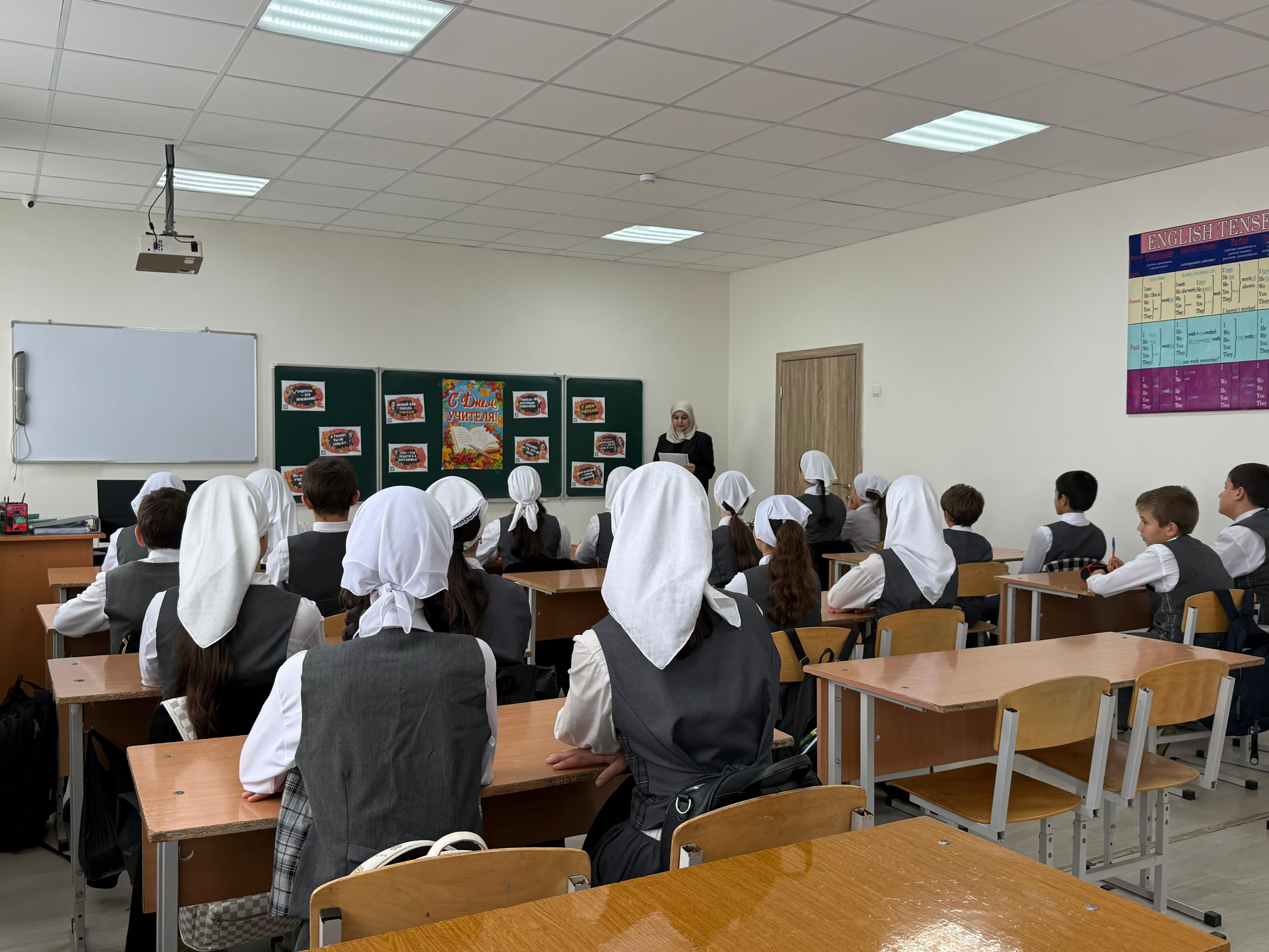 Под руководством советника директора по воспитанию и взаимодействию с детскими общественными объединениями Шахбиевой З. О-Х., совместно с классными руководителями 1-9 классов, были проведены классные часы «Самая важная профессия - Учитель!»