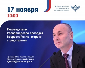 17 ноября 2025 года в 10:00 руководитель Федеральной службы по надзору в сфере образования и науки Анзор Музаев проведет традиционную ежегодную Всероссийскую встречу с родителями.