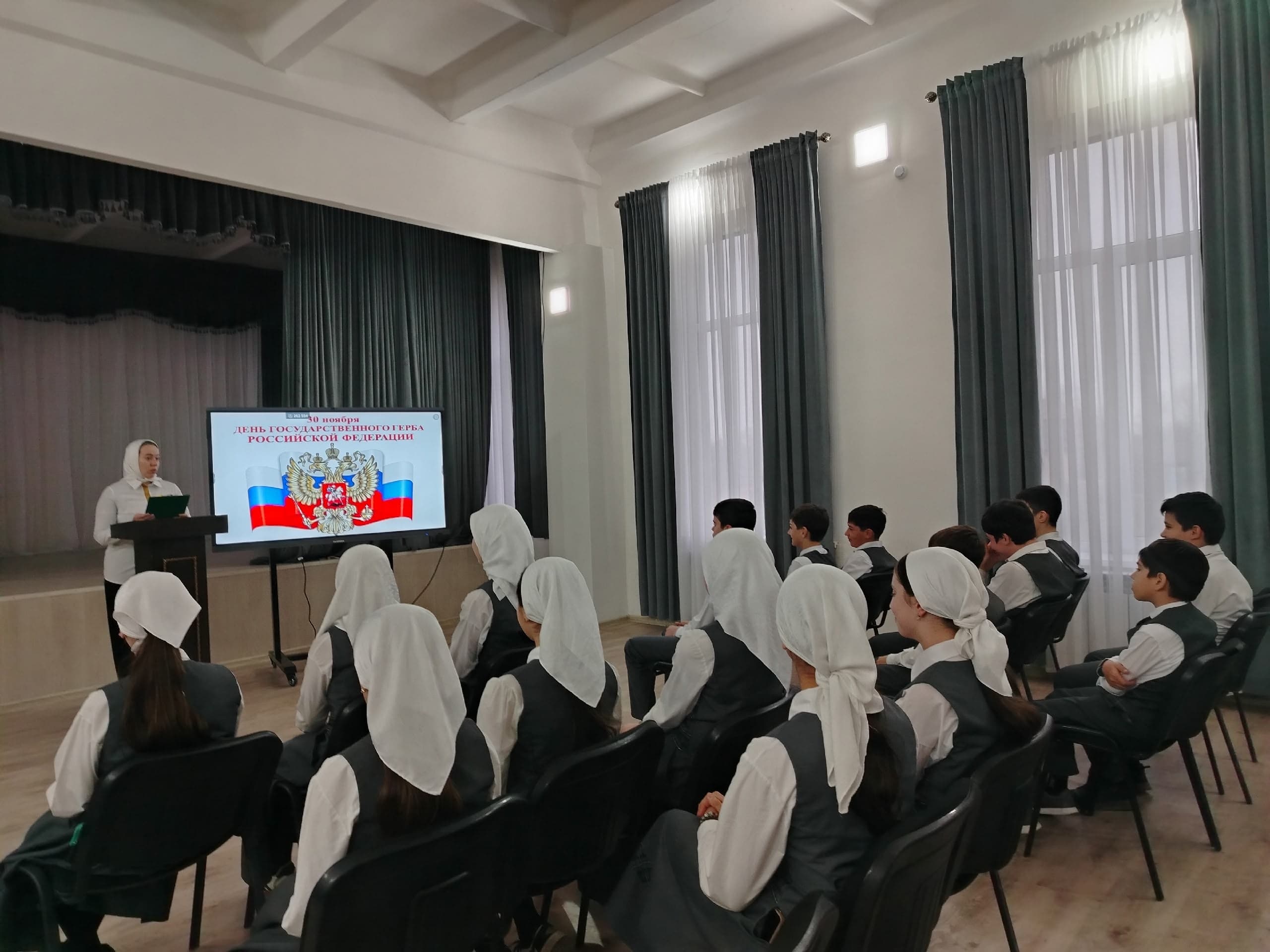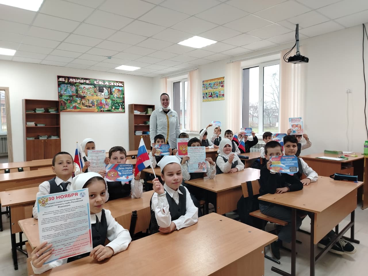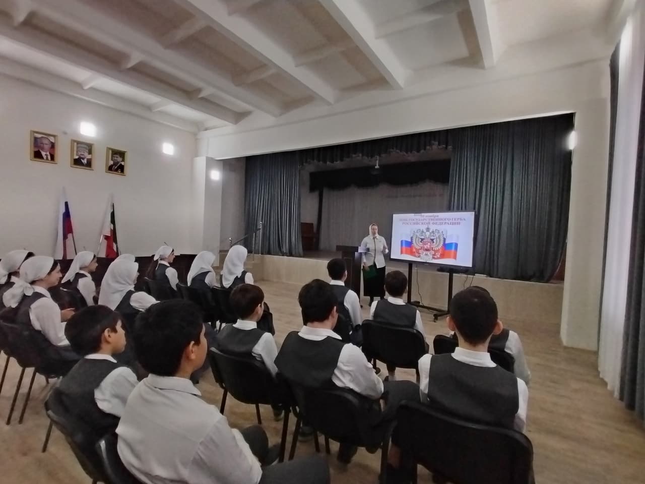 Советник директора по воспитанию и взаимодействию с детскими общественными объединениями Шахбиевой З. О-Х., совместно с классными руководителями 4-8 классов, организовали лекции «Государственные символы России: их значениеи история»