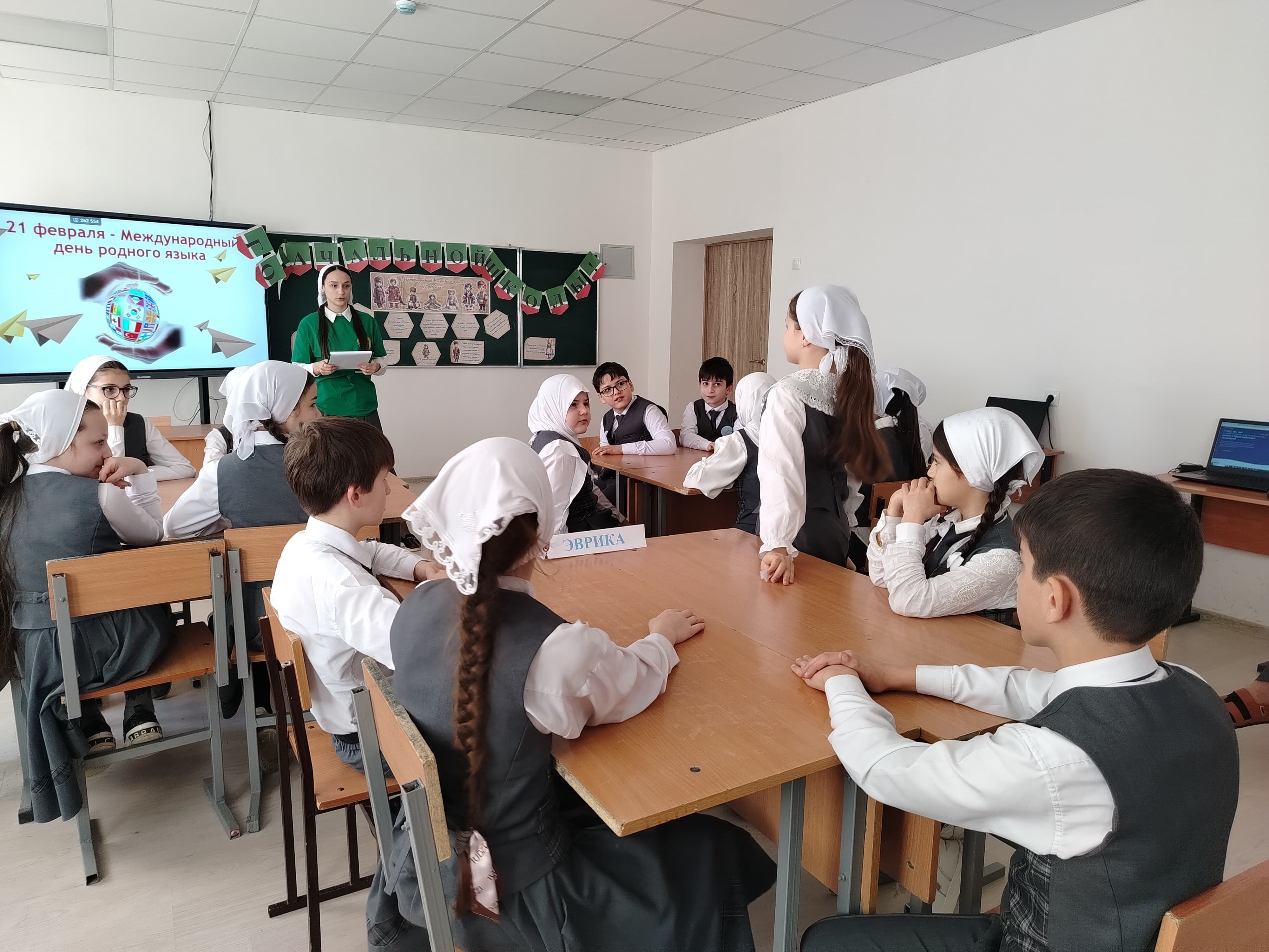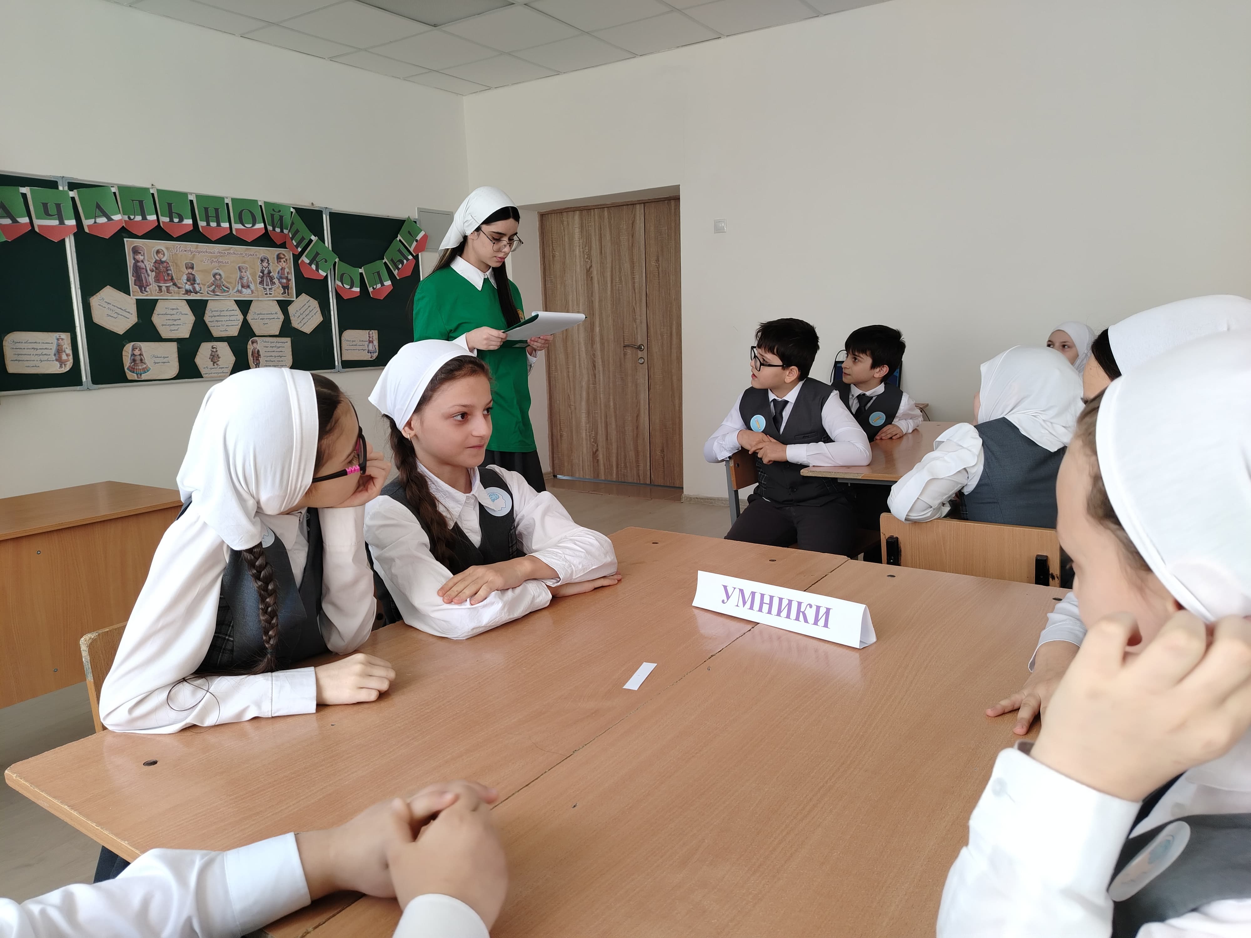 В рамках Года начальной школы, под руководством советника директора по воспитанию и взаимодействию с детскими общественными объединениями Шахбиевой З.О-Х., совместно с активистами ЧРОО ЕДЮО «Юные Кадыровцы», была организована Викторина «Язык - часть народного наследия» среди обучающихся 4-х классов.
